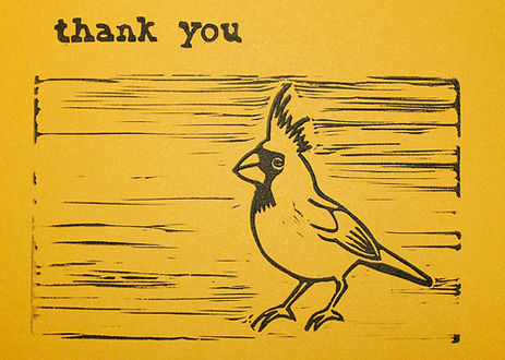 All cards are made from hand-carved blocks that I print one at a time using a press or by hand.